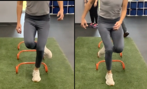 When looking at this picture of a patient landing from a jump on one leg, can you tell which side is her injured side? While she may not have pain and she may feel pretty confident with jumping and landing, there is still an apparent difference from one side to the other that would put her at a greater risk for injury or re-tearing her ACL.
