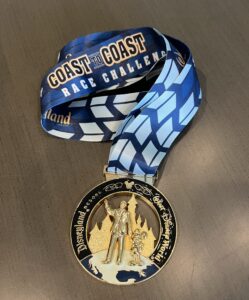 “The Coast to Coast medal after racing in Disneyworld and Disney Land in the same year is my favorite medal! My mother raced with me in Disneyworld in January, and when the race in Disney Land came around, she was injured so I decided to push her in a wheelchair. We were able to complete all the races together and it meant so much to me. It was one of my favorite races of all time!” – Kam