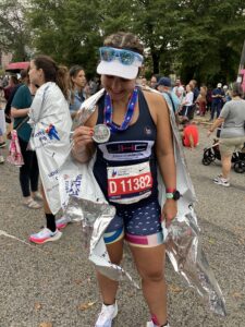 Personally, I can look at most of my medals and can be flooded with great memories. A few that stand out are my first marathon medal, The Illinois Marathon. I crossed the finish line of my first marathon as a senior in college and then graduated a week later. It was quite special. Another would be my first Ironman medal from Ironman Wisconsin. Training for an Ironman is an experience in itself, so making it to the starting line AND the finish line is pretty emotional. Finally, my Crystal Lake Half Marathon medal from 2020 is one that I will always hold close to me. It was the only race that happened in 2020 and after an extremely difficult year for most of the world, it was so wonderful to feel that sense of normalcy again.