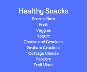 Dancing burns between 300-500 calories per hour depending on a person’s weight. This means it is so important for dancers to be aware of their nutrition during long rehearsal days. Our muscles and mind need food for energy and focus. But what we chose to give our body is key. It is easy to just grab a quick snack while driving from school to the studio. But what you chose is key! Instead of running through the coffee line for a sugary, empty calorie filled drink or a fast food line, plan ahead the night before and pack a healthy snack. This gives you a chance to make healthier choices. High sugar foods may give you a quick energy boost but it also give you a sugar crash, leaving you tired and unable to focus. Here is a list of a few healthy snack options to provide you all the necessary elements for success, carbs, protein and fiber.